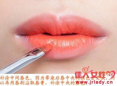 在画出唇形后,用唇刷将唇膏均匀地填充到唇部。这里有一个小技巧,你可以先在唇部中心点涂一些唇膏,然后向四周扩散,这样可以让唇色更加均匀。